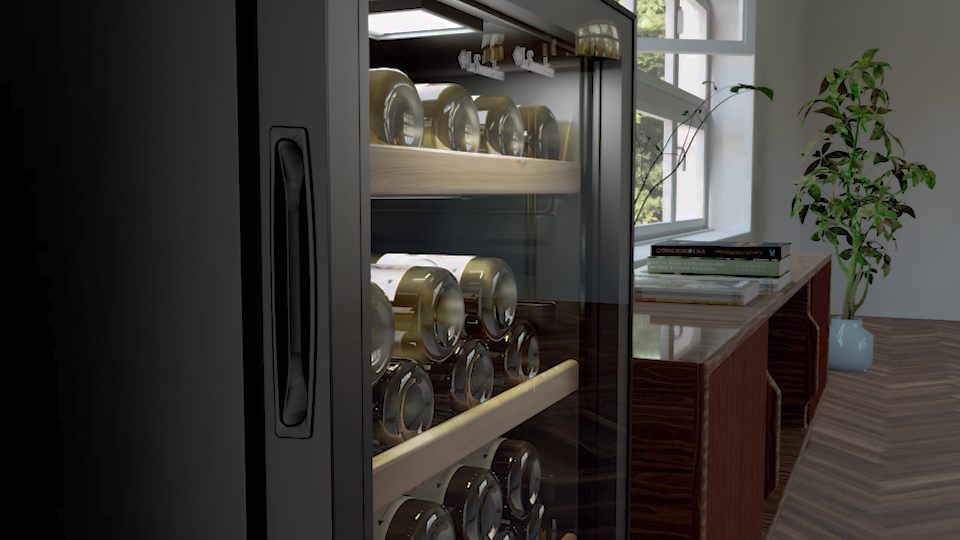 Dzięki całkowicie czarnej obudowie i eleganckim szklanym drzwiom , LS102DZBLACK łączy w sobie estetykę i wydajność. Dwustronne drzwiczki wykonane z hartowanego szkła z powłoką UV skutecznie chronią butelki przed światłem, dopasowując się jednocześnie do wystroju wnętrza.